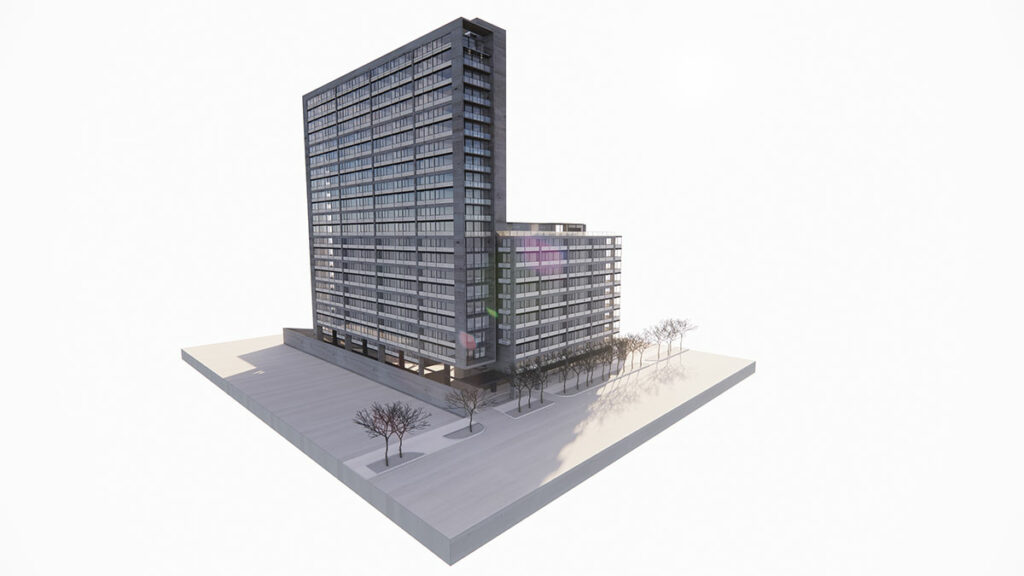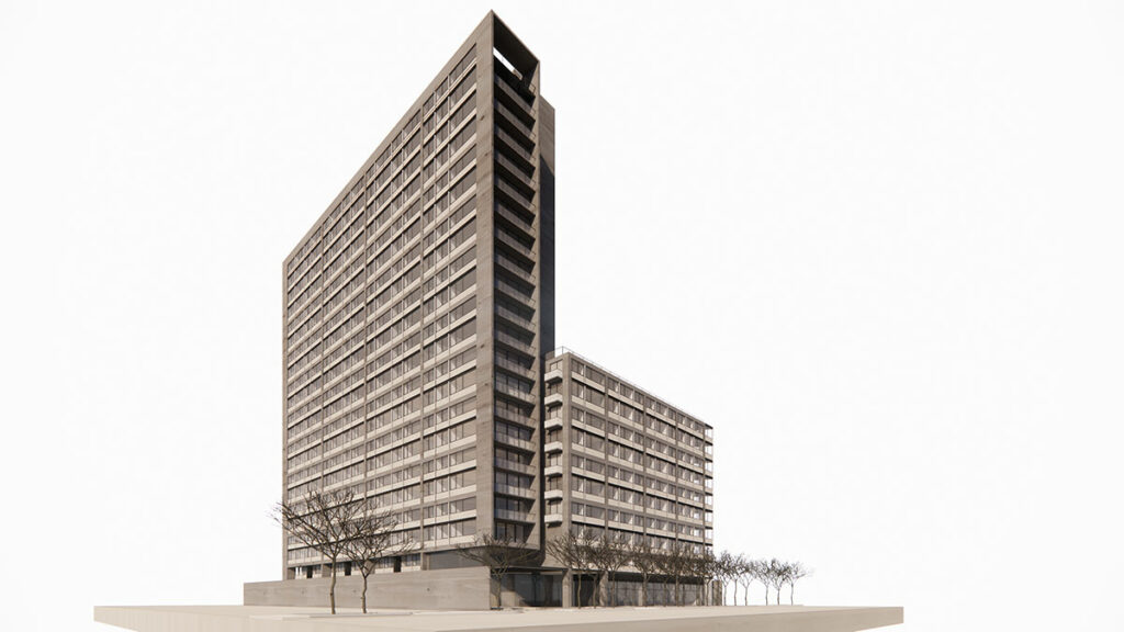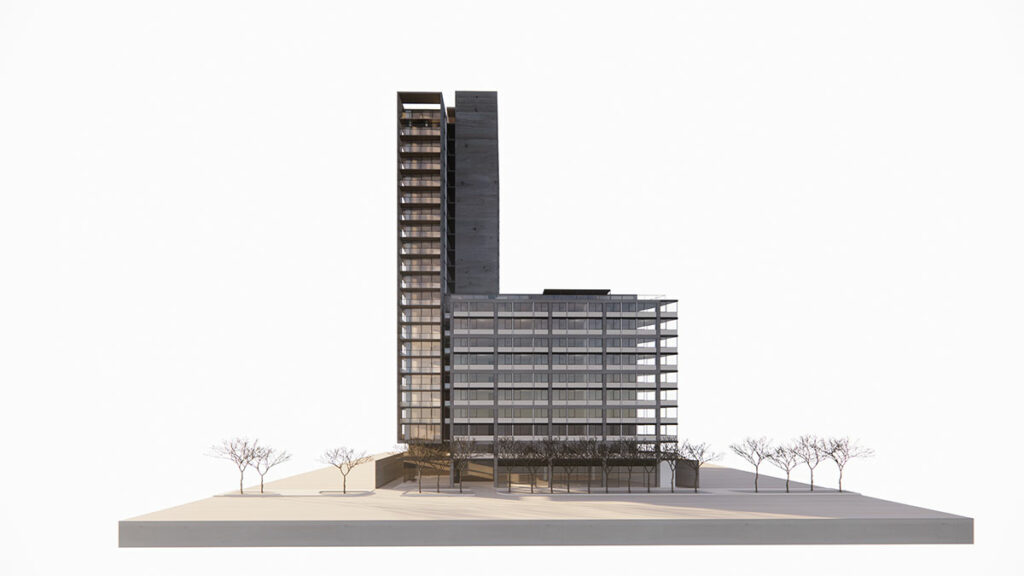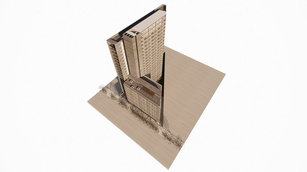 El proyecto, ubicado en Ciudad de México, es una construcción que combina diferentes tipos de espacios en un solo edificio. Con una superficie total de 38,440 m², la torre se eleva sobre un terreno de 2,393.00 m², integrando comercio, áreas de amenidades y residencias en sus múltiples niveles.