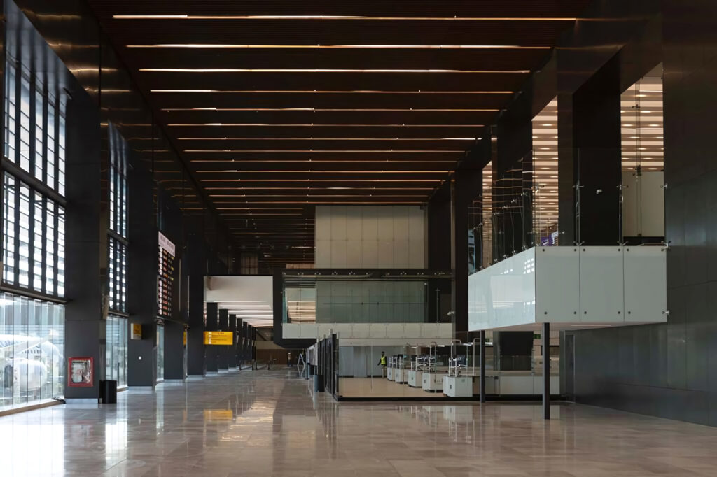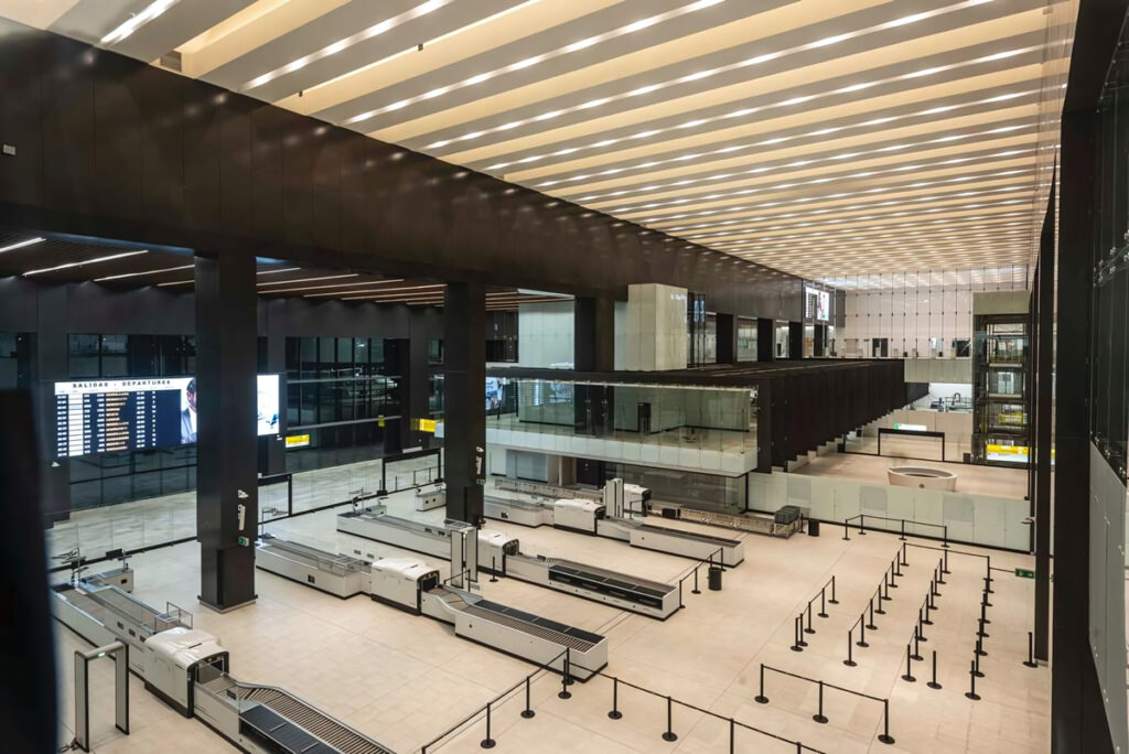 - El Pasillo Internacional que se inserta en el lado este del Dique Bravo conteniendo los flujos de llegadas y embarques internacionales del Nuevo Procesador.