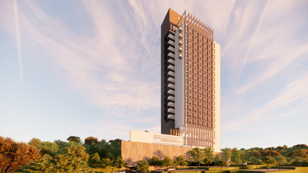 El programa contempla 180 habitaciones con una superficie promedio de 36 m² cada una, además de un estacionamiento con capacidad para 222 automóviles.