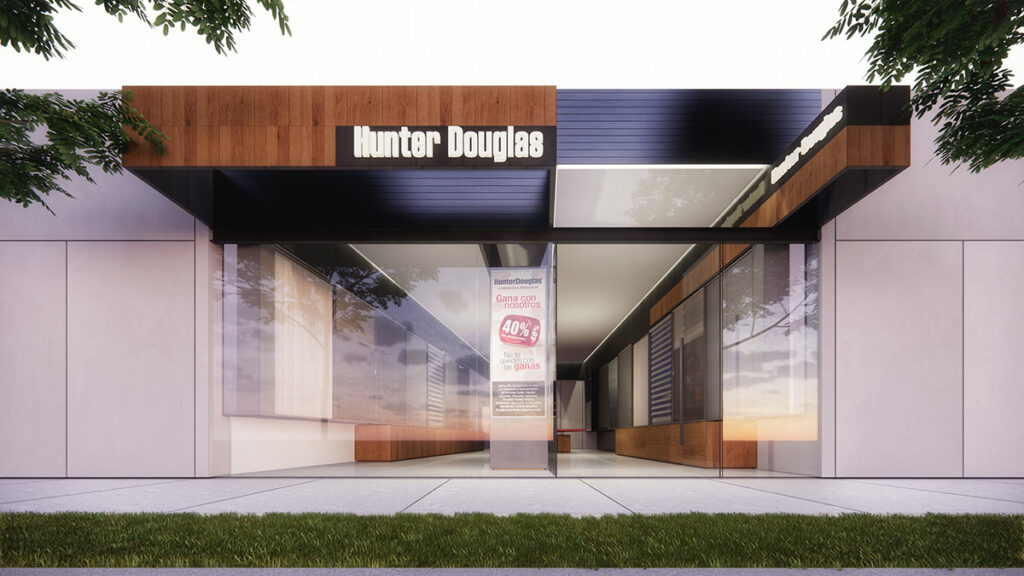 El proyecto, en colaboración con Estudio Lamela, consiste en el diseño y desarrollo del prototipo de tiendas Hunter Douglas. El diseño arquitectónico prioriza la imagen de marca, utilizando una estética contemporánea y materiales propios de la empresa con la idea de que la tienda misma sirva de muestrario de aplicación de algunos de sus productos.