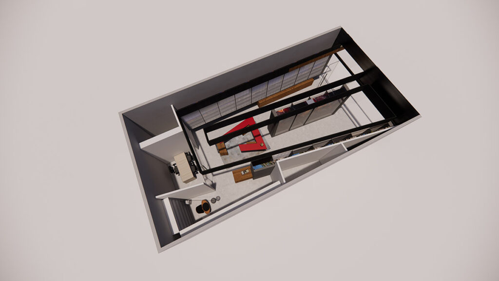 El interior del local se diseñó para ofrecer un recorrido fluido y claro a los clientes. Se buscó maximizar la experiencia del usuario con áreas de exposición bien definidas, donde los productos de Hunter Douglas se presentan de manera ordenada y atractiva. Los acabados en tonos neutros y el mobiliario ayudan a crear un ambiente profesional, ideal para recibir a los visitantes y facilitar la interacción con los productos. La distribución interna se ha optimizado para incluir áreas de exhibición, atención al cliente y oficinas administrativas.